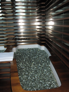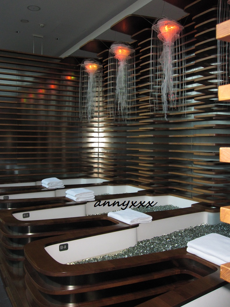 Die Wellness Landschaft überzeugte mich sofort mit ihrem gedämpften Licht und dem wundervollem Geruch. eben einem Dampfbad, einer Sauna, Steinbetten ( ich weiß nicht wie ich das sonst nennen soll) die aussehen wie Badewannen, aber mit Glassteinen gefüllt sind, gibt es auch 2 Wassermassagebetten und das Highlight einen Whirpool mit einer traumhaften Aussicht über die Skyline von Frankfurt ! Wundervoll sag ich euch !