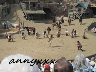 …. denn ich war mit meinen 3 großen Töchtern, meiner Freundin und ihrer Tochter am Kalkberg in Bad Segeberg und, was kann man da machen ???? !!! RICHTIG – sich die Karl May Festspiele anschauen und für einen Tag Cowboy und Indianer sehen, leben und spüren. Der Flair des wilden Westens erreichten einen schon bevor man duch die großen Pforten des Geländes getreten ist. Viele Zuschauer kommen schon verkleidet zu den Festspielen und unterstützen so zusätzlich das Cowboy Feeling.